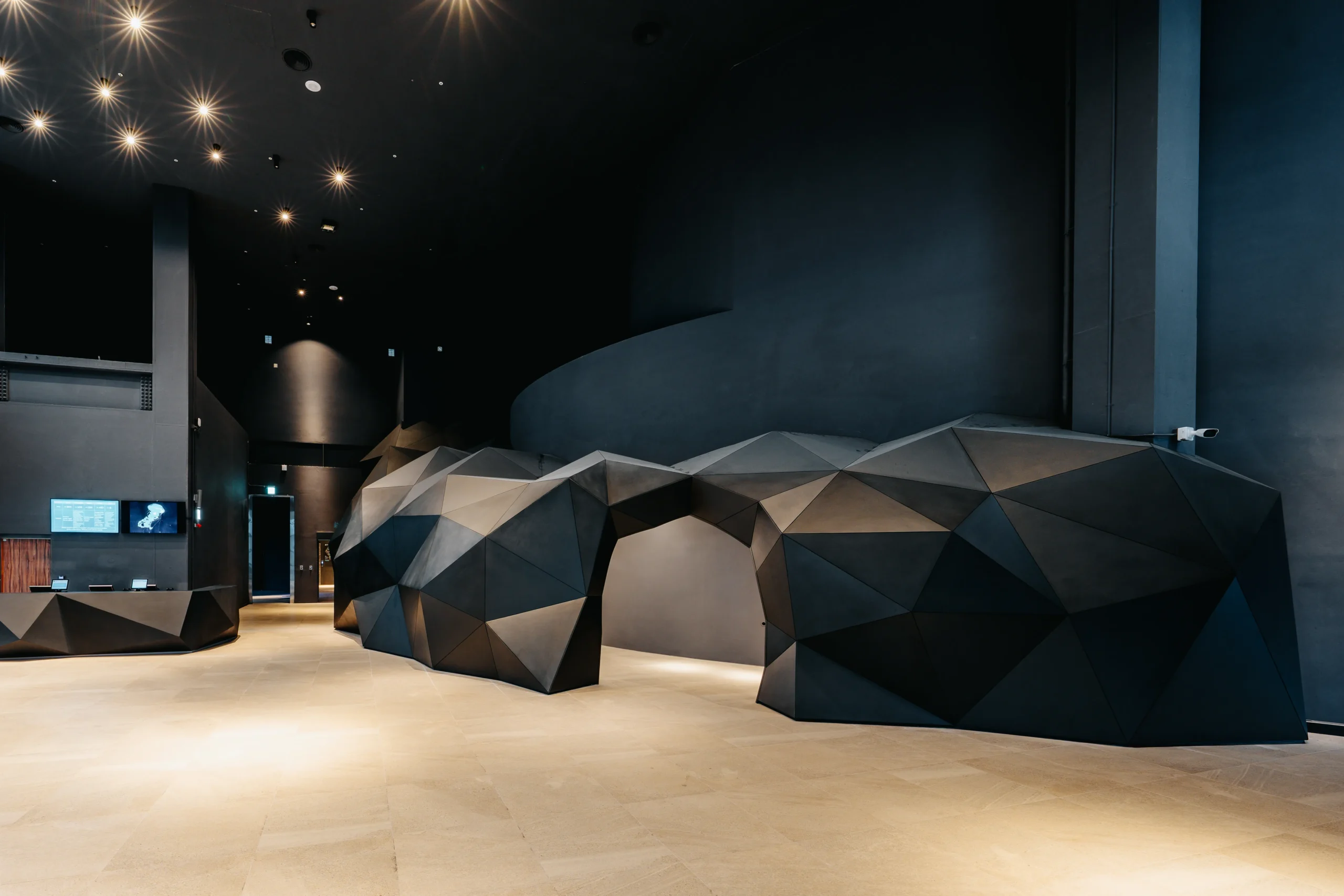 共計五層樓的台中海洋館,以體驗為媒介,「從台中河川 流向世界之海」為展示主軸。透過多元的展示手法與互動式活動,重塑對水文生態的認知。台中海洋館共有八大展示區,有別於傳統的水族缸展示,多元的參觀視角跟沉浸式的參觀體驗,消弭了觀者及被觀者的分界,就像是化身為魚一般,徜徉於其中。