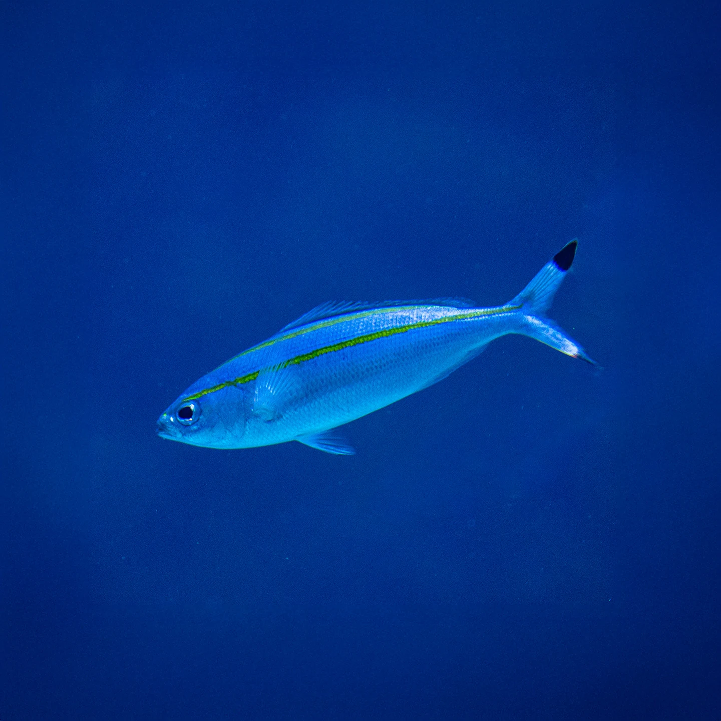 體背藍色,腹面粉紅色,體側有二條金黃色帶