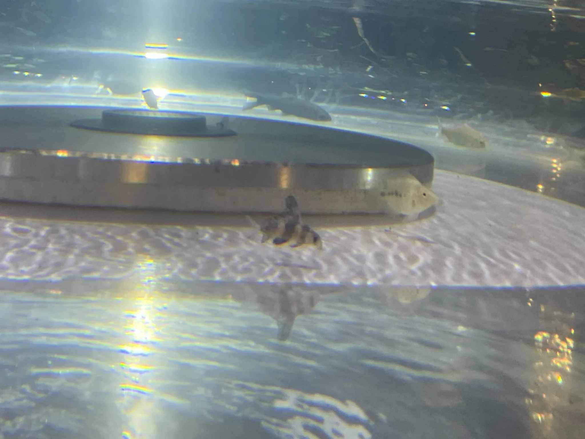 幼魚體色為褐色,體側有 3 條傾斜的深