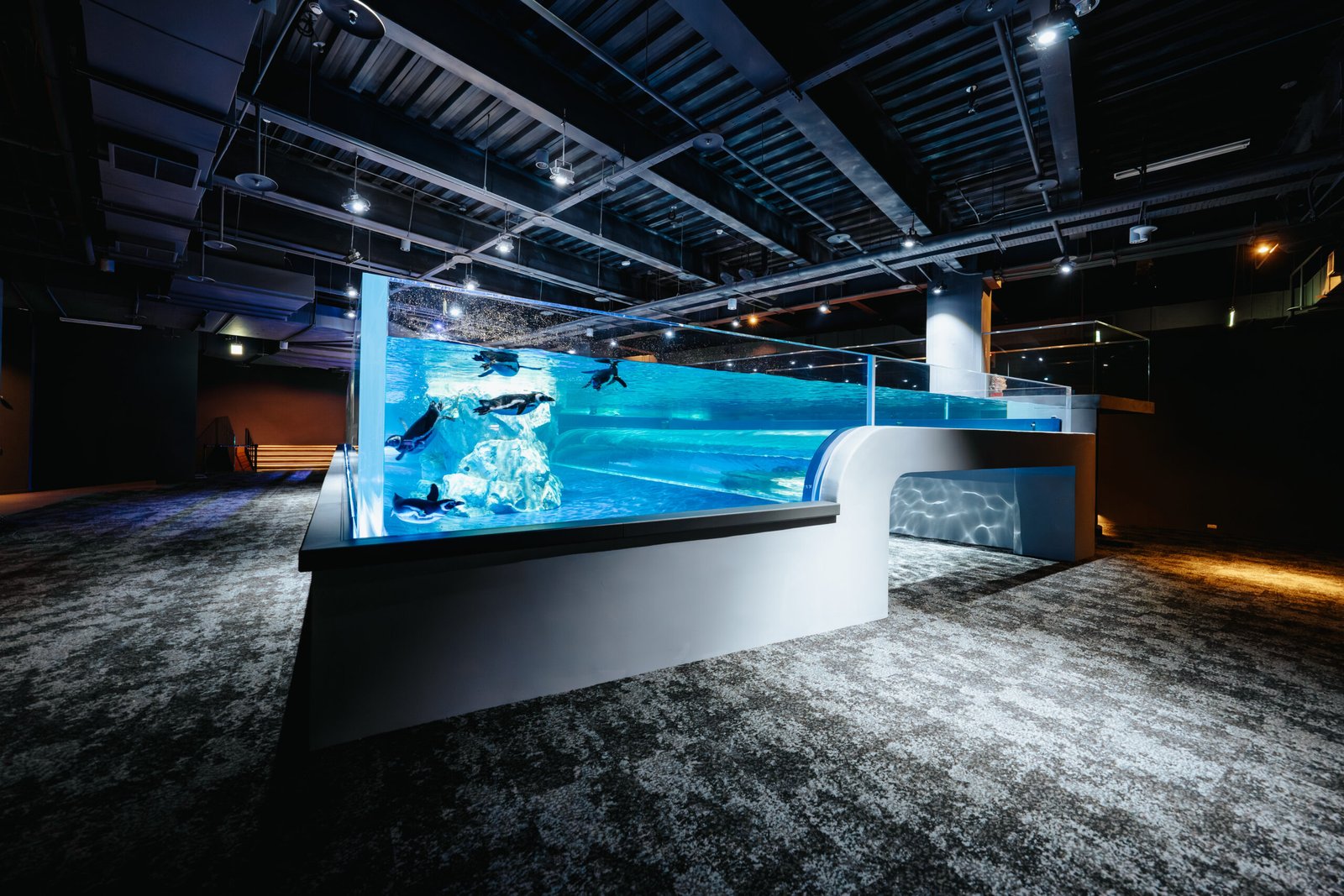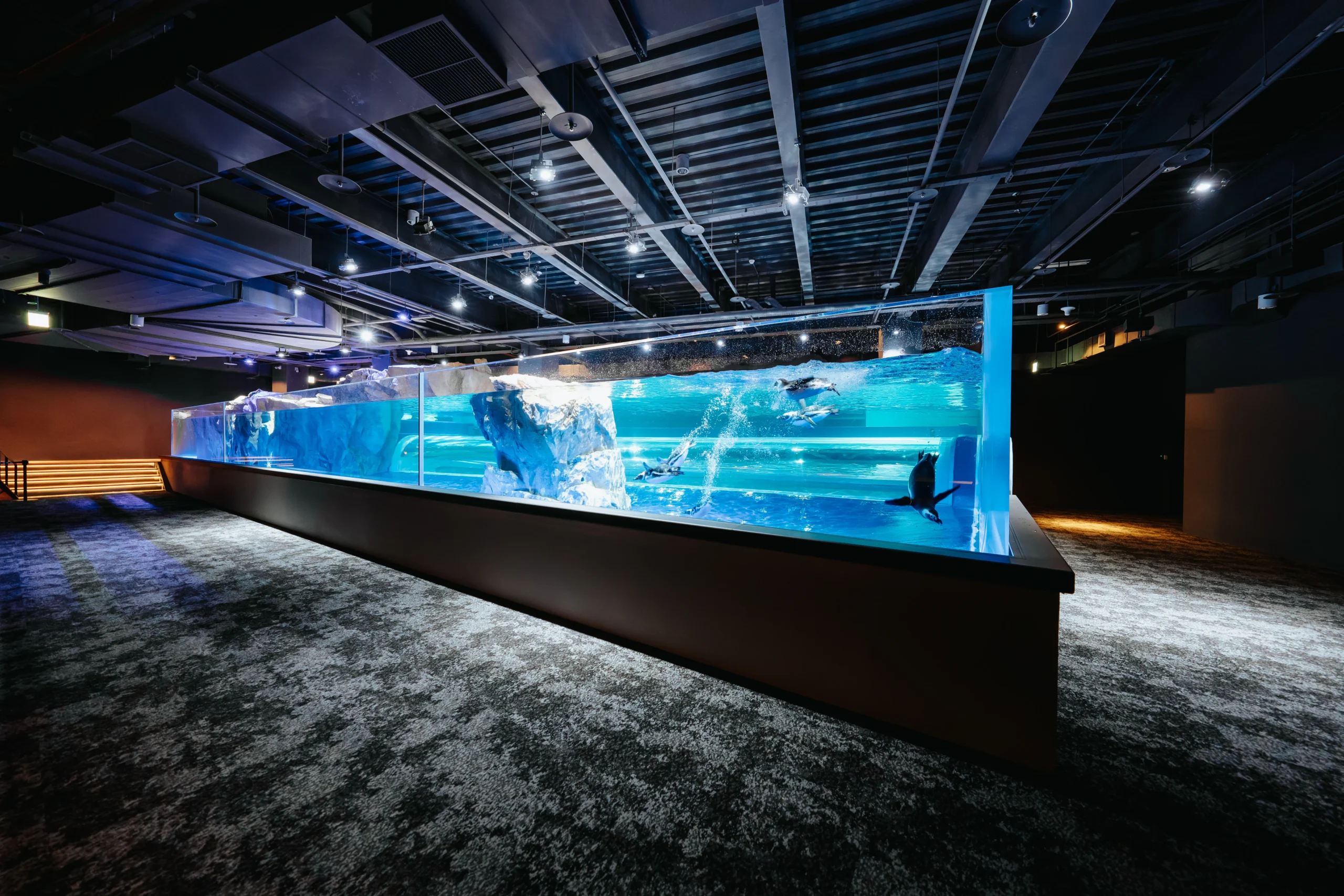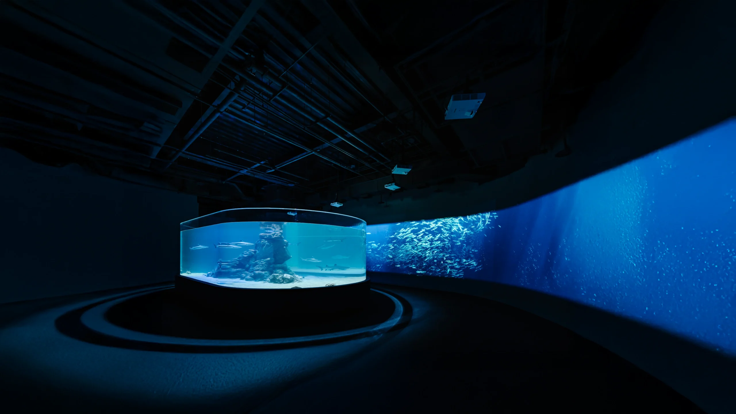 離開近海繽紛的珊瑚世界,來到充滿神秘氛圍的遠洋區。沉浸在開放式環繞鯊魚展示缸中,伴隨電子互動牆,遊客彷彿化身鯊魚,在深海巡游與掠食,親身體驗這場海底冒險。