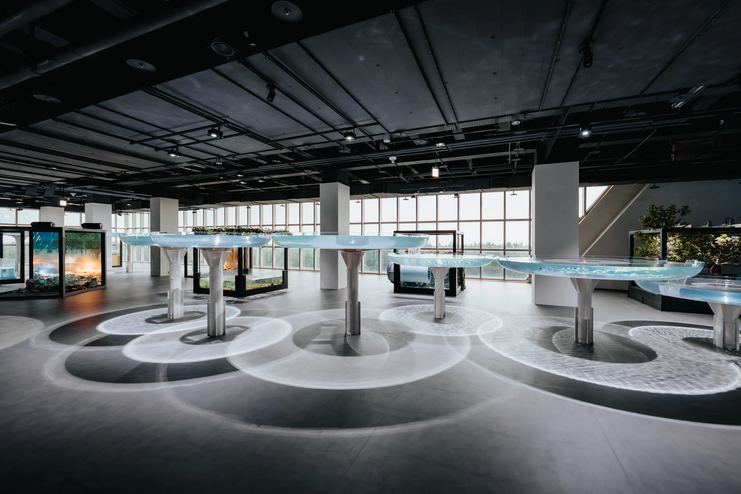 走入透明寧靜的水母展示區。外觀設計仿若水母生長過程的曲線,隨空間變化展現不同形態,營造柔軟通透的氛圍。展區呼應水母生命週期四種形態,並依不同水母習性精心設計。
