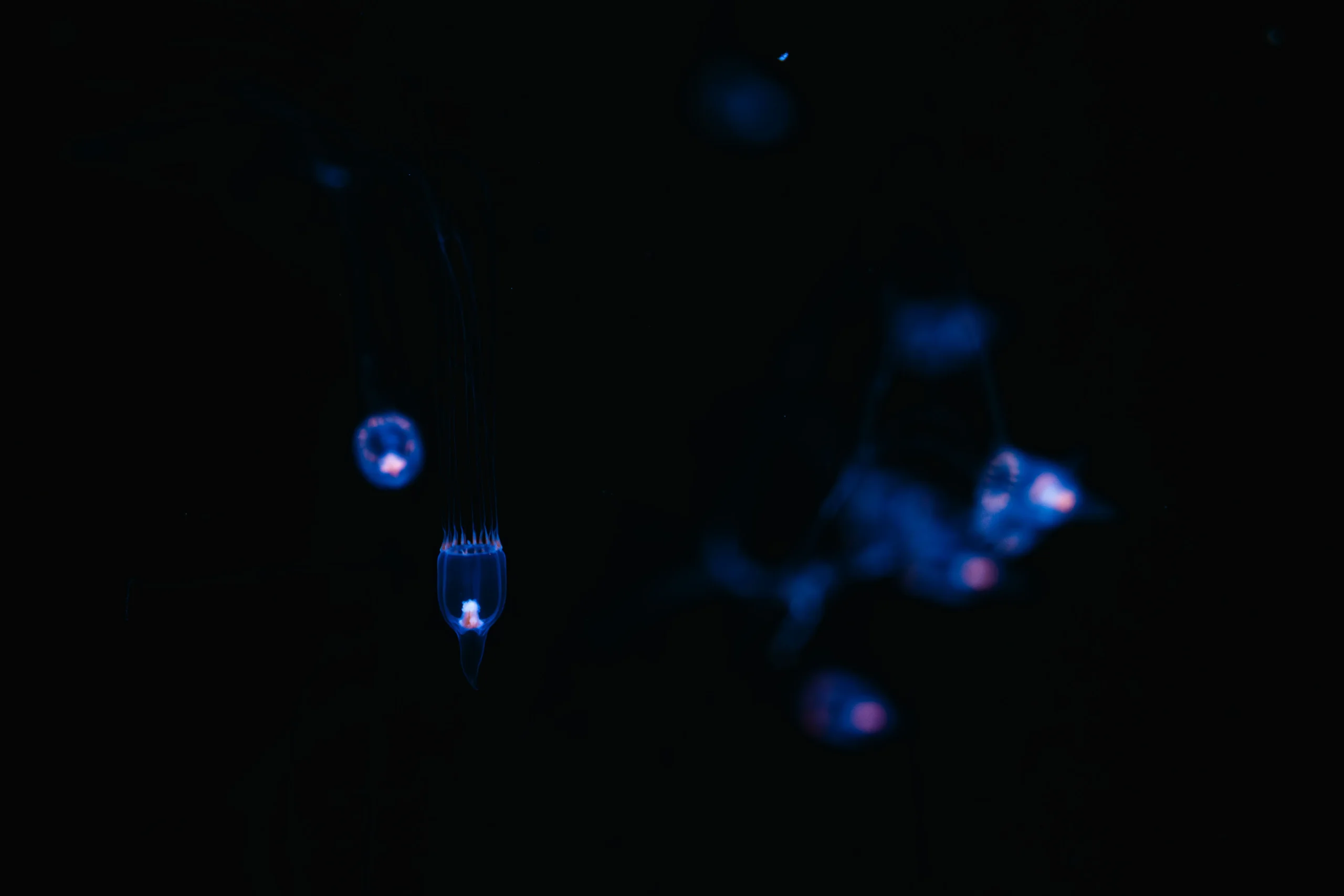 水母實驗室環境純淨明亮,是繁殖與養殖的核心基地。台中海洋館擁有全台最多樣的水母品種,成功養殖逾40種、掌握20種以上的繁殖技術,並與日本加茂水族館合作交流。透過觀察窗,可看見飼育員細心照護水母的日常,展現專業與對生命的尊重。