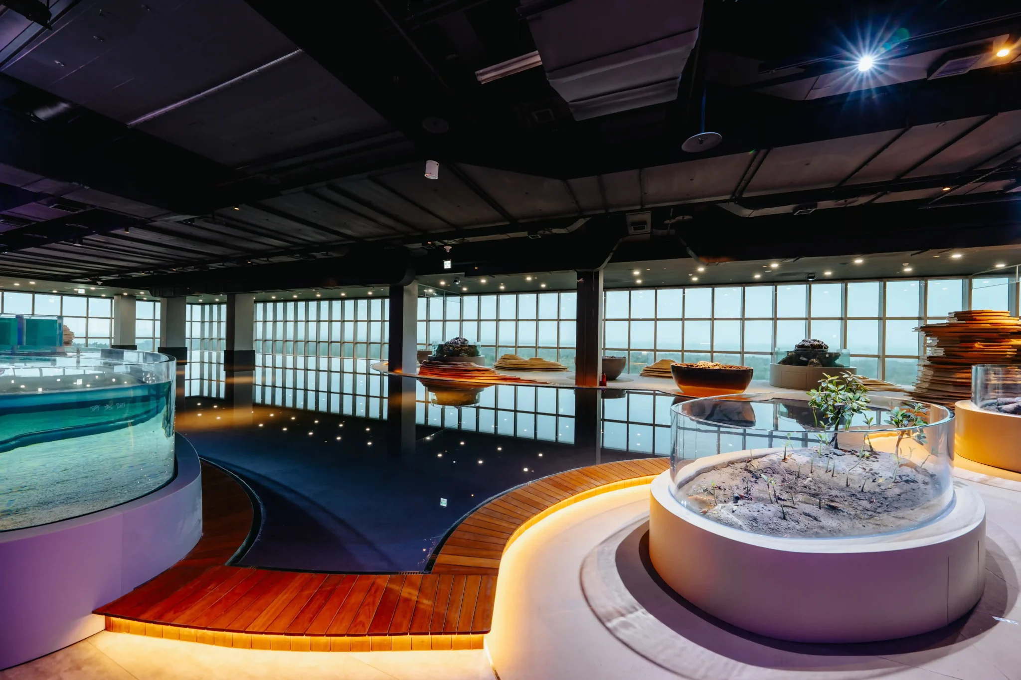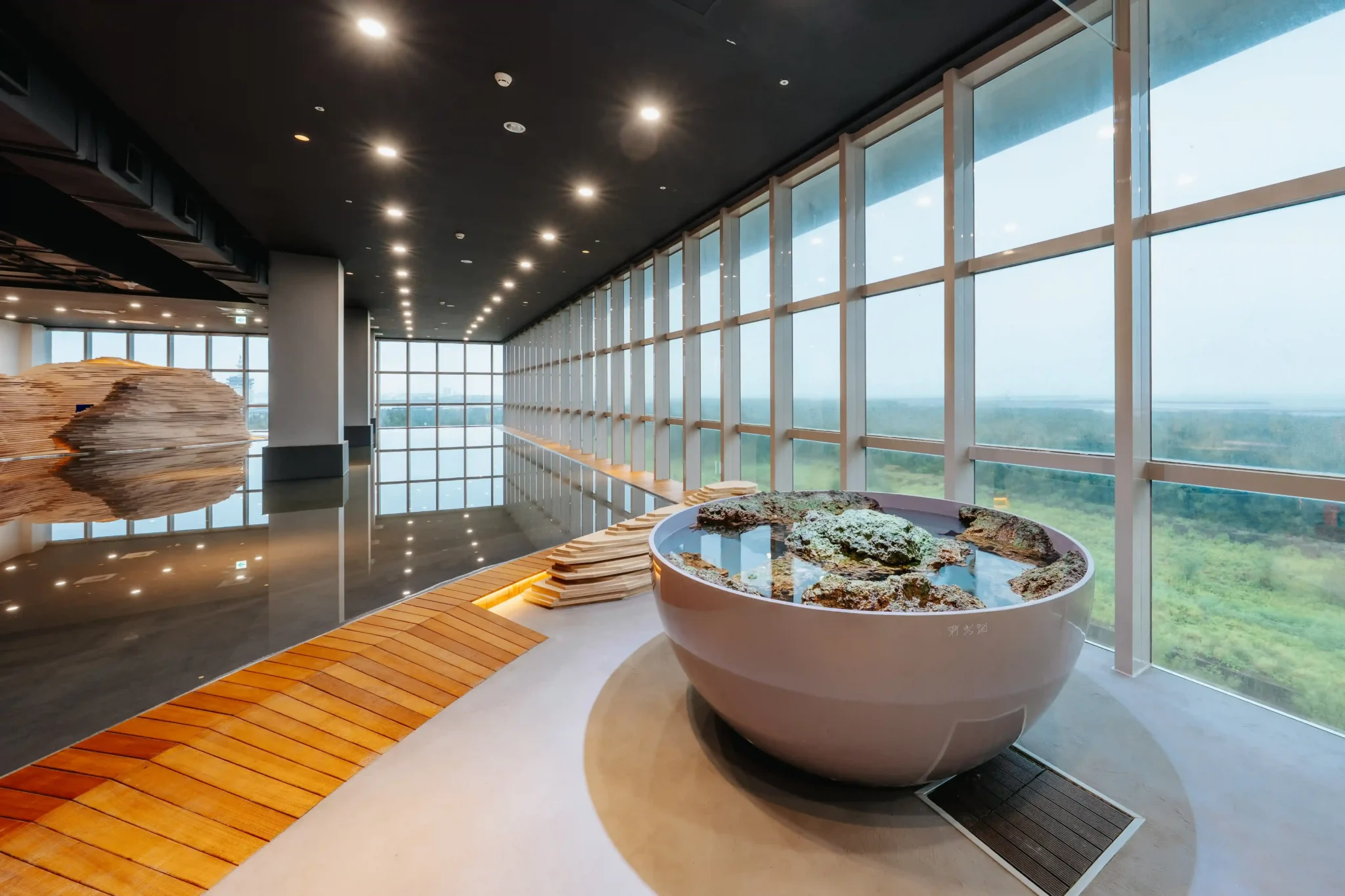 濕地,從廣義來說為陸地與水域之間的過渡地,而多元樣貌的濕地類型也為我們帶來了豐富的生態,包含河口泥灘地跟潛珊瑚礁潮間帶。此區設有全台首座室內人工濕地,隨著時間變化的潮汐漲退,開放民眾親身以雙腳踏入,體驗大自然的樂趣。