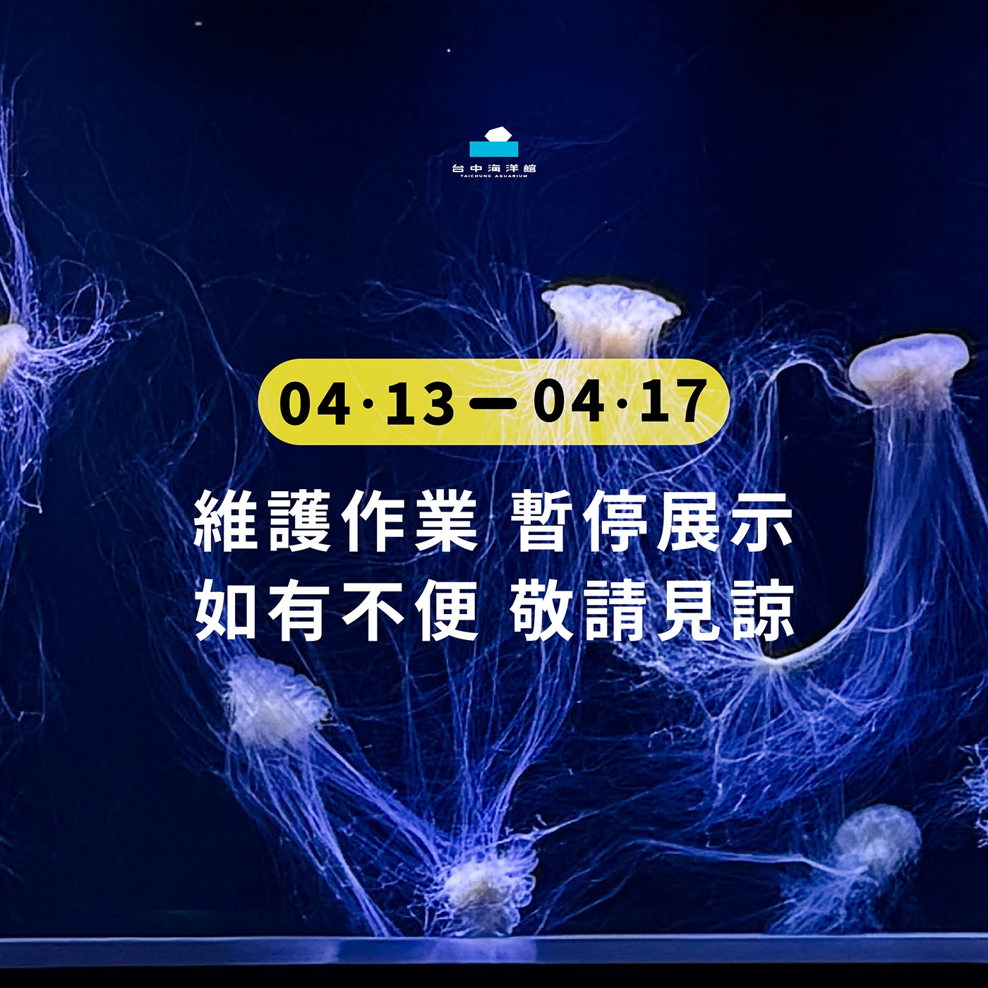 【更新】水母展示缸 3J-8 維護作業延長至4/17,其他展區皆正常開放