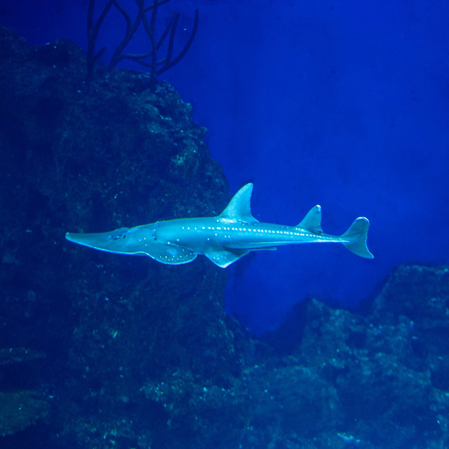 幼魚體一致為深藍色,體具若干白弧狀紋,並